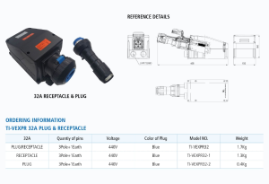 | Phích cắm (PLUG) | 3P+E+N+Earth | 440V | Màu xanh | TI-VEXPR32-3 | 0.8 kg |